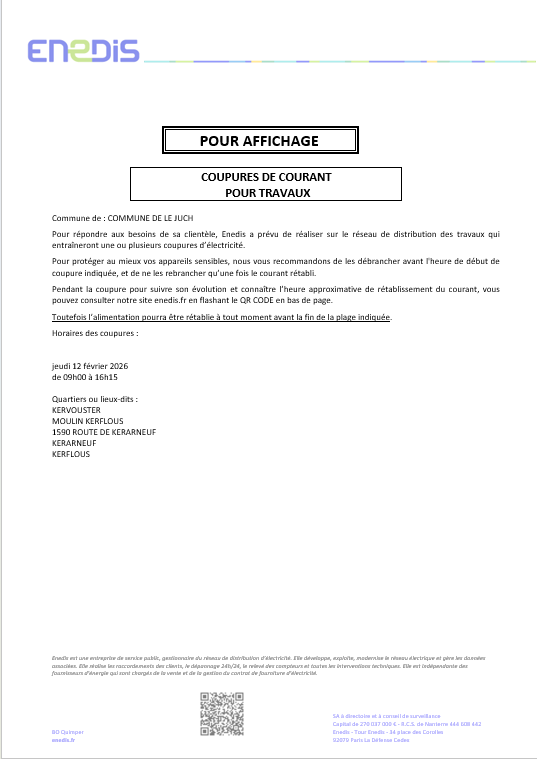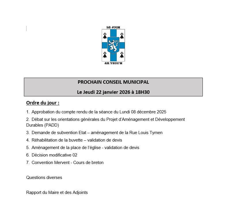 Ouverture d’une enquête publique relative au projet de zonage d’assainissement de la commune de Le Juch. Elle se déroulera du 09 décembre 2025 au 09 janvier 2026. Continue reading