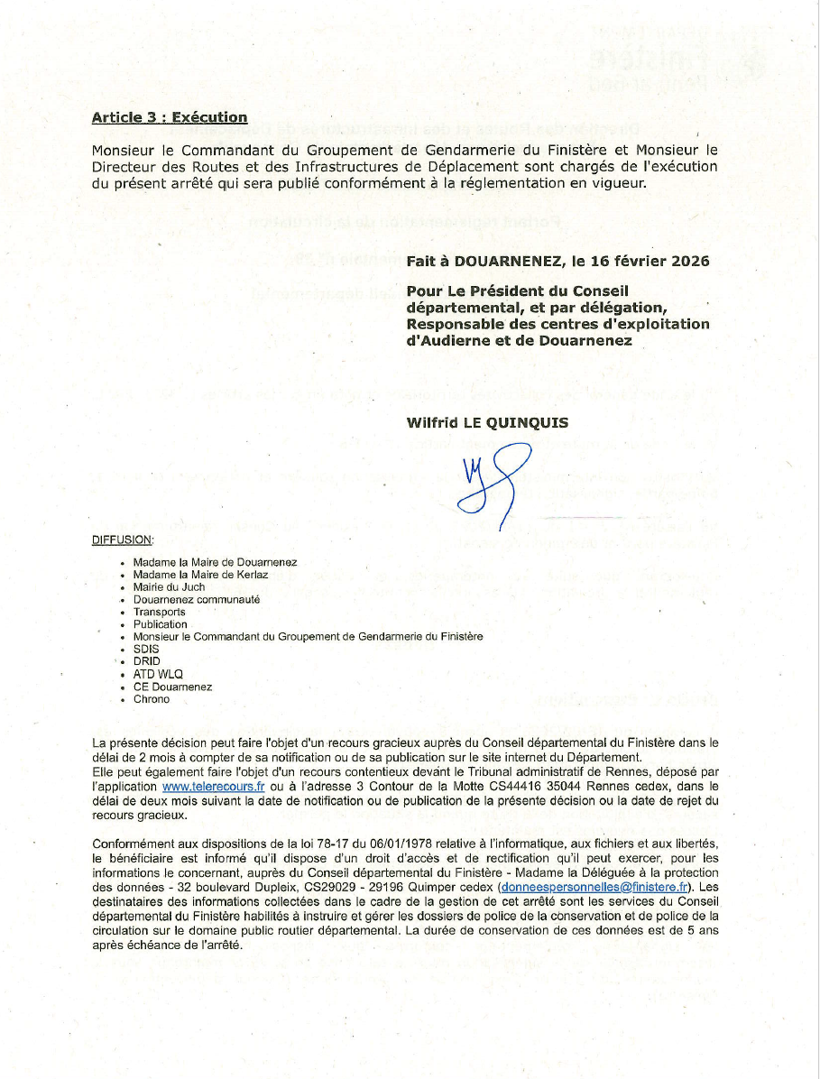 RD 39 – ROUTE BARREE ENTRE LE JUCH ET KERLAZ