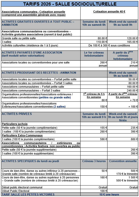 tarifs salle 2026 Publié le 13 février 2026 dans La salle socioculturellePleine résolution (547 × 773) ← Précédent